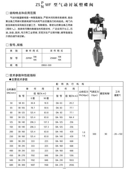 ZSP\NWF型氣動襯氟塑蝶閥