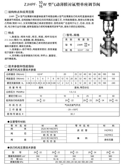 ZJHPF10/16W型氣動薄膜襯氟塑單座調(diào)節(jié)閥