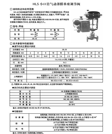 HLS小口徑氣動(dòng)薄膜單座節(jié)閥