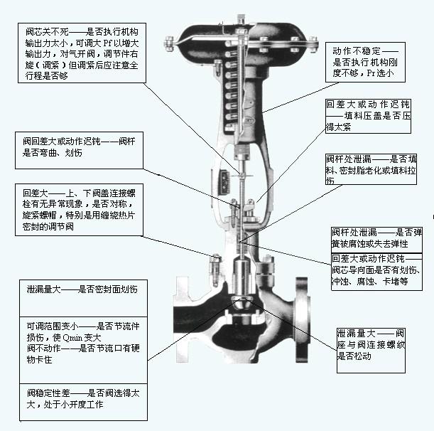 調(diào)節(jié)閥具有結(jié)構簡單和動作可靠等特點,但由于它直接與工藝介質(zhì)接觸,其性能直接影響系統(tǒng)質(zhì)量和環(huán)境污染,所以對氣動調(diào)節(jié)閥必須進行經(jīng)常維護和定期檢修,尤其對使用條件惡劣和重要的場合,更應重視維修工作。